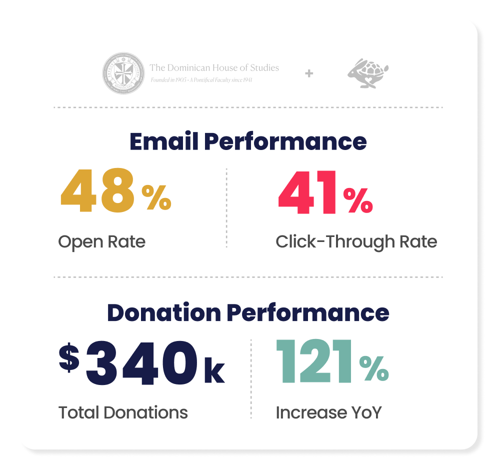 The Dominican House of Studies (DHS) entrusted Fable Heart Media to spearhead its 2023 Annual Appeal campaign, which aimed to strengthen donor engagement and increase contributions before the end of the year. Through our efforts, the campaign raised an impressive $340,000 in donations – a significant jump compared to the $180,000 raised in the previous year’s campaign without our involvement.