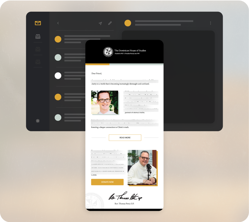 Our approach is rooted in understanding The Dominican House of Studies’ unique mission and goals. We believe in building strong connections between organizations and their supporters through mission-aligned storytelling and thoughtful communication.
