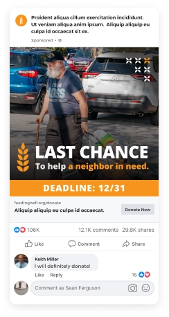 Emotionally compelling stories were key. We created various ad formats, including videos, carousels, and static graphics. Our team built every asset with a focus on clarity, local relevance, and real-world impact. One of the standout campaigns was “Feed Your Neighbors,” which asked a simple but powerful question: Would you feed your neighbor today? This campaign helped supporters understand the issue in a personal and immediate way.