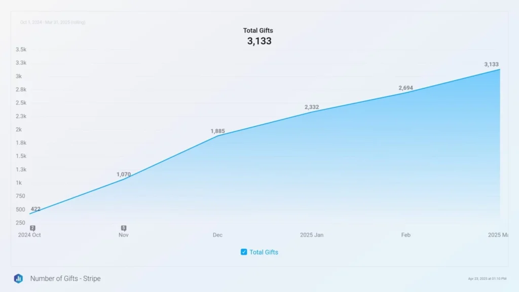 One of our most successful efforts to date was our recurring giving campaign, which invited supporters to give just $10 per month—the equivalent of providing 60 meals. While the ask was simple, the strategy behind it marked a significant shift in how the organization approached donor engagement.